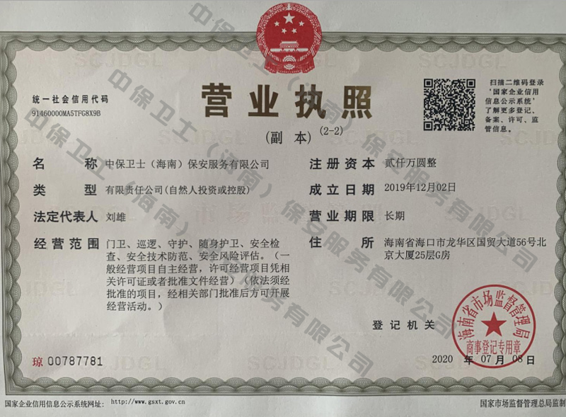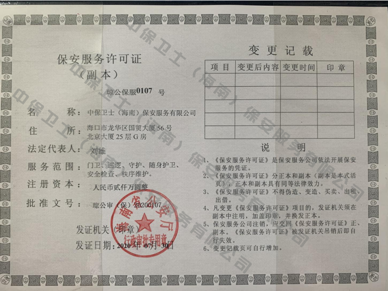 三亚怡然信息技术支持有限公司是经海南省公安厅批准,依法持有《保安服务许可证》,提供保安服务、门卫、巡逻、守护、区域秩序维护、随身护卫、安全检查的专业化保安服务公司。