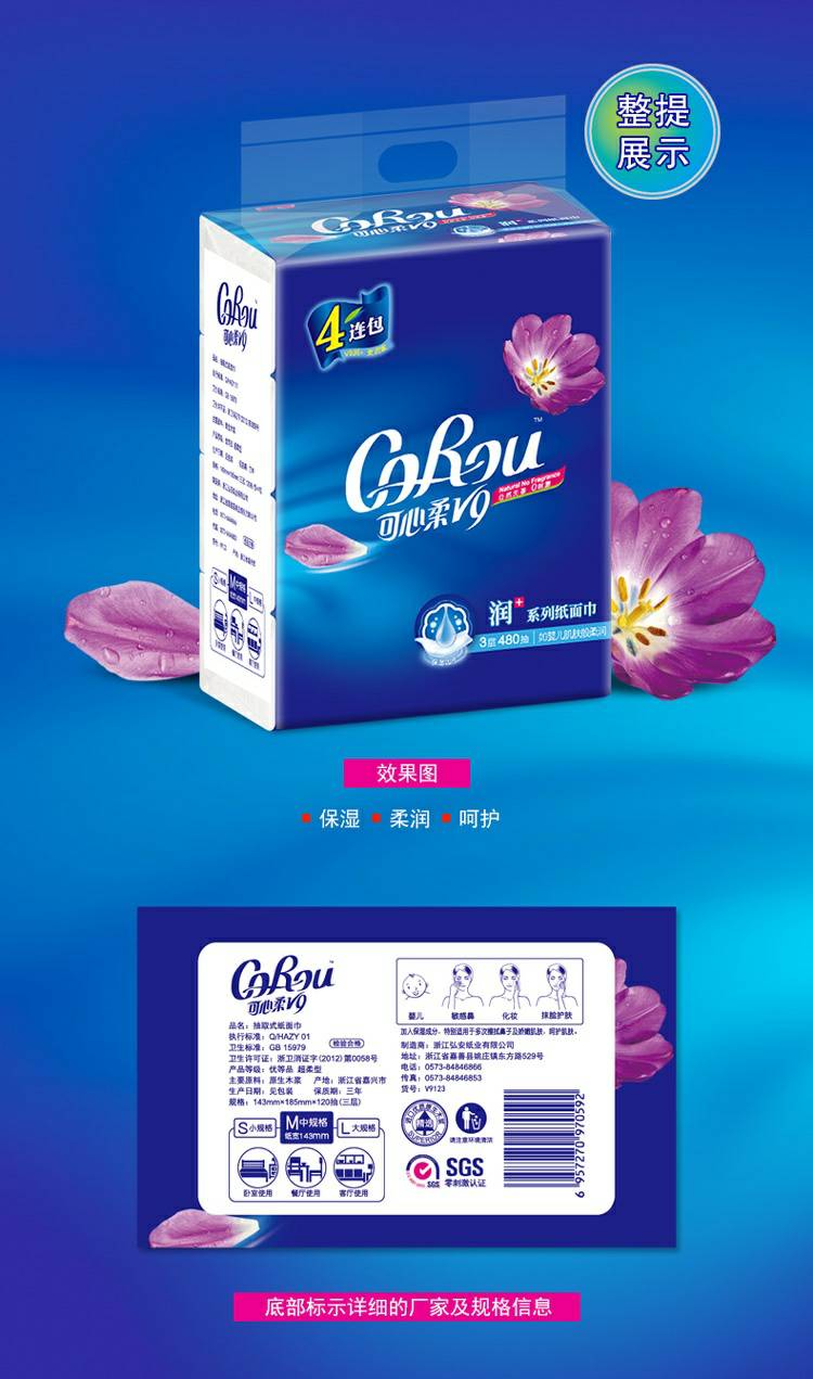 CoRou V9润+系列CoRou云柔系列白色木浆60抽