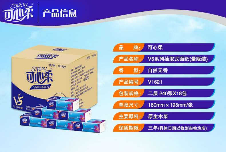 可心柔 V5系列CoRou云柔系列白色木浆60抽